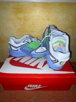 Zapatillas deportivas Nike Pegasus 2005 edición limitada para mujer, en color blanco y plata. Ideales para un look casual y cómodo. - Están nuevas. Ni un solo uso. Se venden por número pequeño. -Tallaje pequeño. Teniendo un 36 en todas las zapatillas normales nike, esta viene pequeña. Talla similiar 35. - Se incluyen en su caja original.