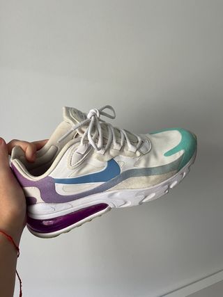 Zapatillas Air Max 270 react originales, no son una copia como se muestra en la suela ,detalles y en la propia caja del producto. Recién rebajadas de la mitad. Están totalmente como nuevas y se acepta negociación. Envío express rápido y eficaz en menos de 24 horas después de haber sido compradas.