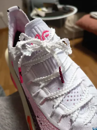 Zapatillas de running Nike ZoomX Invincible Run FK 2. - Diseño en tejido de punto. - Detalles en blanco y morado. - Talla 41 * la suela en una de ellas esta un poco despegada, nada que no arregle un poco de pegamento ;)