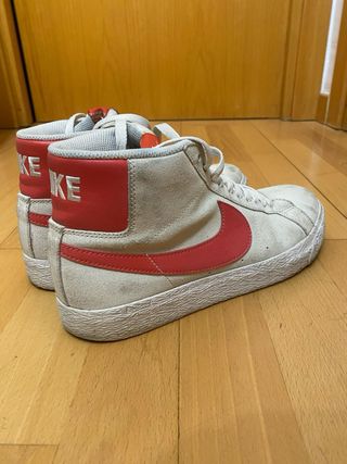Zapatillas altas Nike SB Blazer Mind en color blanco y rojo. Un clásico del skate. - Parte superior de ante y cuero. - Suela de goma vulcanizada. - Cierre con cordones.