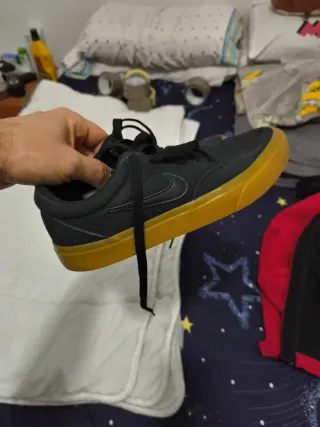 Zapatillas deportivas Nike SB originales en color negro con suela de goma. Usadas, con desgaste visible por el uso, pero totalmente funcionales. Ideales para skate, uso diario o como zapatillas de batalla. Entrega en mano o envío. Precio acorde al estado.