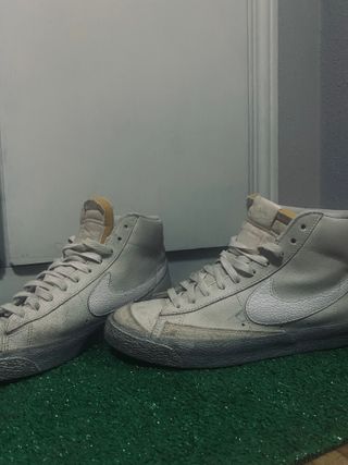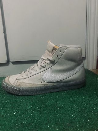 Vendo Nike Blazer Mid originales en color beige/crudo estilo vintage. Zapatilla clásica de Nike, muy combinable y siempre de moda. Están usadas pero siguen teniendo mucha vida. Se nota el uso en la puntera y suela (ver fotos), pero estructuralmente están bien y son perfectas para uso diario o para quien busca este modelo sin pagar precio de tienda. ✔ Diseño retro muy buscado ✔ Comodísimas para el día a día ✔ Modelo que no pasa de moda Ideal si te gusta el estilo urbano, skater o casual.