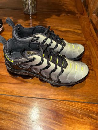 Nike Air VaporMax Plus — Talla 44 Vendo estas zapatillas originales Nike Air VaporMax Plus, usadas solo 2-3 veces. Están en perfecto estado, prácticamente nuevas. Motivo de venta: no las uso y llevan tiempo guardadas. Compradas en JD Sports Londres, me costaron 230€ y las dejo en 130€. Color gris con suela VaporMax roja translúcida, muy cómodas, ligeras y llamativas. Ideales para diario o para vestir. Características: • Originales Nike • Modelo VaporMax Plus • Talla 44 (EU) • Estado: 9,5/10 • Con caja