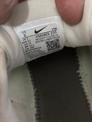 Zapatillas Nike HM6803-100. - Talla US 8, UK 7, EUR 41, CM 26, BR 39.5, CN 260. - Fabricadas en Vietnam. - Código de producto: 04FHJGTD4DG1E. - Fecha de fabricación: 09/25/24.