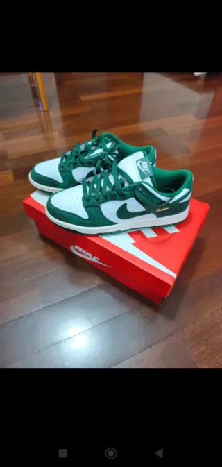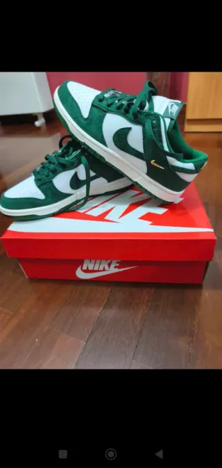 Zapatillas Nike Dunk Low en color verde y blanco. Con su caja. - Talla 39. - Diseño clásico de Nike. - Cordones a juego.
