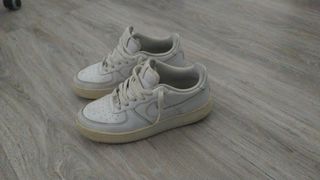 Vendo un par de zapatillas Nike. Son de color blanco y marrón, y tienen un diseño limpio y elegante. - Ideales para el uso diario. - Están en buen estado.