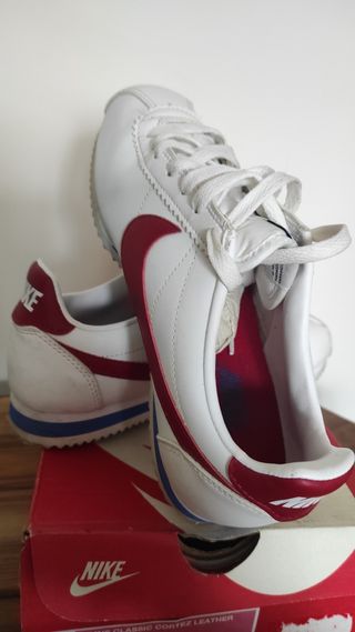 Zapatillas Nike Classic Cortez Leather en talla 37.5. - Diseño icónico de Nike. - Combinación de colores blanco y rojo. - Material de cuero.