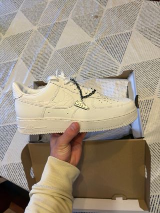 Zapatillas Nike Air Force 1 en color blanco y talla 40. Un clásico reinventado con materiales sostenibles. Nuevas a estrenar, con caja, factura y etiquetas, TODO ORIGINAL - Fabricadas con al menos un 20% de material reciclado. - Diseño icónico y versátil. - Suela de goma para mayor durabilidad.
