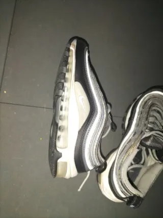 Zapatillas deportivas Nike Air Max 97 con un diseño moderno y llamativo. - Combinación de colores blanco y negro. - Estilo icónico de las Air Max 97. Algún desperfecto en la suela