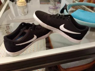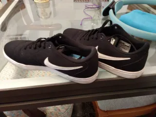 Zapatillas de lona en color negro con detalles blancos. - Diseño clásico de Nike. - Cierre con cordones. Solo se han puesto para salir 2 veces y no más. Me equivoqué con la talla, por eso las revendo. Todavía tengo el ticket de compra.