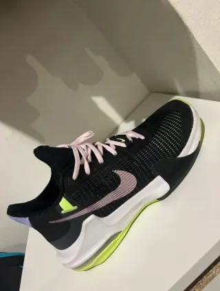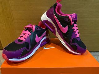 Air Max negras con detalles morados y rosas, marca nike talla 36.5 totalmente nuevas a estrenar. Ningún uso conservan su caja y el papel que suelen llevar en el interior para que no se deformen.
