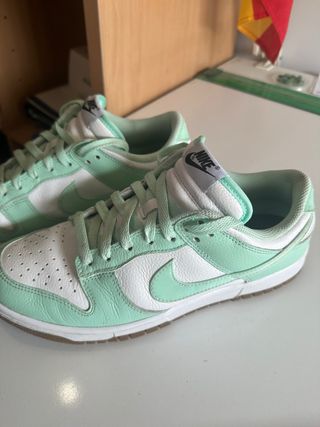 Zapatillas Nike Dunk Low en color verde y blanco, talla 42. Con un solo uso, en perfecto estado y en su caja original. - Cuentan con un diseño clásico y elegante. - Ideales para el uso diario.