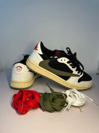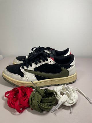 Zapatillas Nike Travis Scott x Fragment Estaran usadas unas 3-4 veces - Diseño icónico con detalles en blanco, negro y verde oliva. - Incluye cordones adicionales en rojo y blanco y verde ( totalmente sin usar )