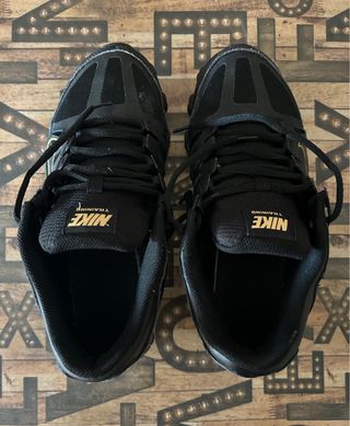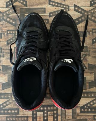 Zapatillas deportivas Nike con un diseño moderno y llamativo. - Combinación de colores negro y rojo. - Cierre con cordones. están casi nuevas , de empeine estrecho