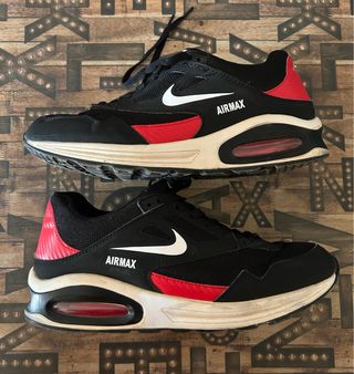 Zapatillas deportivas Nike Air Max con un diseño moderno y llamativo. - Combinación de colores negro y rojo. - Detalle del logo Air Max en el lateral.