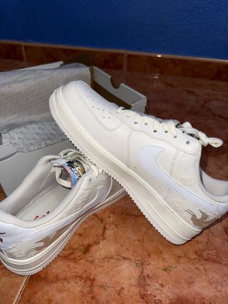 Zapatillas Nike Air Force 1 edición especial San Valentín. - Caja incluida. Sin usar. Nuevas - Diseño en color oro y blanco. - Detalles inspirados en la celebración.