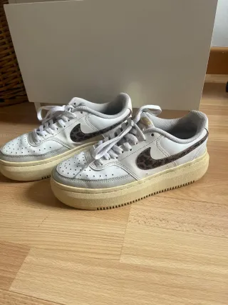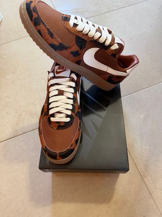 Zapatillas originales Nike Court Vision altas con diseño animal print. En buen estado. Compradas en E.E.U.U. 26.5 cms. - Detalle de estampado animal en el logo.