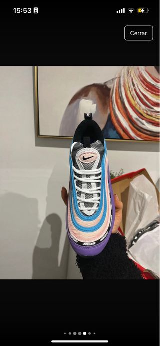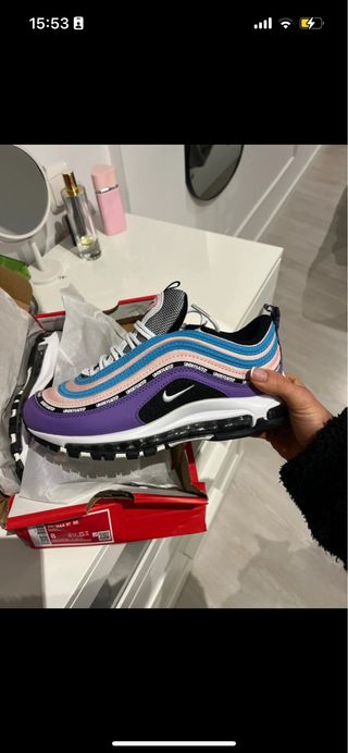 Zapatillas Nike Air Max 97 Undefeated, talla 38. Un diseño llamativo y moderno. - Combinación de colores vibrantes. - Detalles de marca visibles.