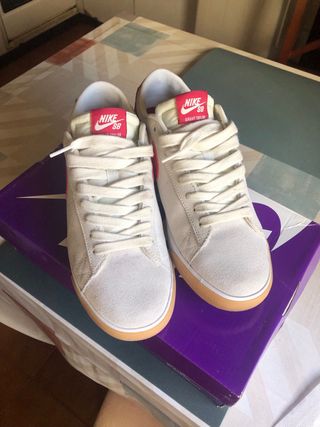 Zapatillas deportivas Nike SB. - Diseño en color beige con detalles en rojo. - Suela de goma. - Cierre con cordones.