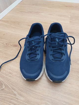 Zapatillas de running Nike en color azul, en excelente estado. - Diseño deportivo y ligero. - Cordones azules. - Suela blanca con detalles negros.