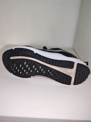 Zapatillas de running Nike en color negro, en excelente estado. - Diseño deportivo y ligero. - Suela blanca para mayor amortiguación. - Cierre con Cordones negros.