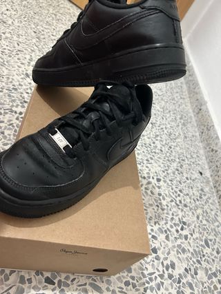 Zapatillas Nike Air Force 1 originales en color negro. Un clásico que nunca pasa de moda. Las compré por 120,00€ en JD Y están cómo nuevas. - Diseño atemporal. - Cierre con cordones. - Detalle metálico en los cordones con AF1.