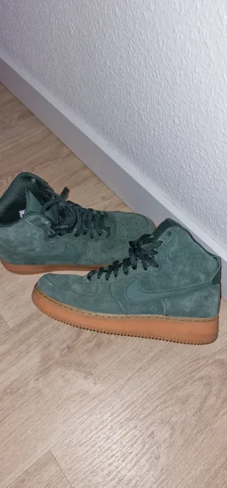 Botas Nike Air Force One en talla 45. Usadas en un par de ocasiones. Muy cómodas. - Exterior de ante en color verde. - Suela de goma en tono marrón. - Cierre con cordones.