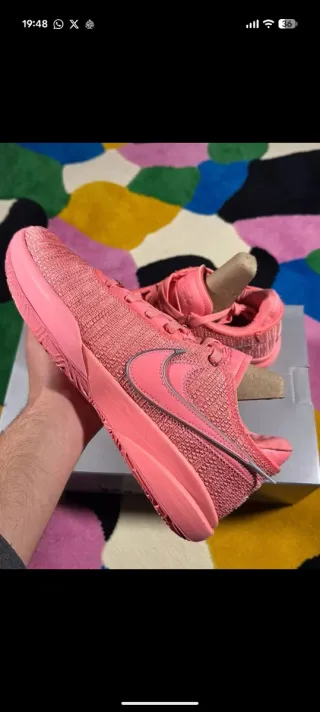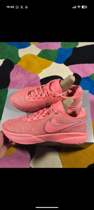 LeBron XX "Pink Diamond", la zapatilla insignia de LeBron James en Pink Gaze/Metallic Silver. Talla 45 EU/ 11 US/10 UK, nuevas, sin estrenar y con su caja original. Parte superior de malla sintética ligera y transpirable, diseño de corte bajo para mayor agilidad y amortiguación Zoom Air en el antepié y el talón, características diseñadas para baloncesto y deportes de alta intensidad. Diseño totalmente rosa con detalles plateados, un Swoosh lateral con ribete reflectante y la prominente marca XX en la lengüeta. Uno de los modelos más populares y de mayor rendimiento de la línea LeBron, ideal para quienes buscan estilo y jugabilidad