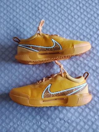 Zapatillas Nike con un diseño moderno y llamativo. - Combinación de colores azul y naranja. - Cierre con cordones rojos. - Detalle de logo Swoosh en los laterales. Negociable