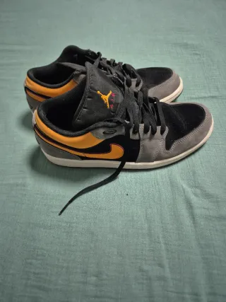 Zapatillas deportivas Nike Air Jordan 1 Low en tonos grises y negros. Un clásico para tu colección. Un poco a usadas - Diseño de caña baja. - Detalles en color naranja y rojo. - Suela de goma.