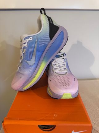 Zapatillas Nike Vomero 18 sin estrenar, con su caja original. - Diseño moderno con degradado de colores. - Cordones blancos. - Suela con detalles en amarillo y azul. - En tienda su precio es 190€. Las vendo porque fue un regalo y me están grandes.