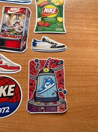 Set de pegatinas estilo streetwear / sneaker. Caja con temática de caja de zapatilla Nike incluida. Alta calidad y buen acabado. Perfectas para portátil, móvil, libreta, botella, etc. Producto nuevo. También hago pegatinas personalizadas por encargo.