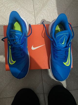 Zapatillas de baloncesto Nike Precision VII en talla 43. - Viene con la caja original. - Color azul con detalles en verde lima. - Diseño deportivo y moderno.