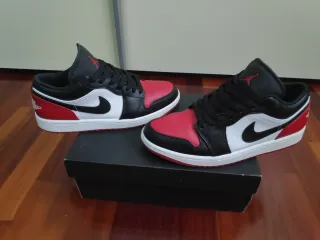 Zapatillas deportivas Nike Air Jordan 1 Low, usadas 2 veces, como nuevas - Diseño bajo. - Combinación de colores negro, rojo y blanco. - Detalles icónicos de Jordan.