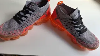 Zapatillas deportivas Nike Air Vapormax con un diseño moderno y llamativo. - Parte superior de tejido técnico transpirable. - Suela con unidades de aire visibles para una amortiguación reactiva. - Detalles en color naranja vibrante. #Zapatillas #deportivas #NikeAir #Vapormax #Sale