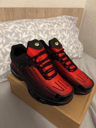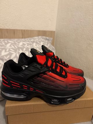 Zapatillas Nike TN Plus 3 con un diseño llamativo. - Combinación de colores negro y rojo. - Detalle de Swoosh en el lateral. - Logo 'Tn Air' en la lengüeta. nuevas envío a BCN entrega mano perfecto para regalar en navidad y reyes