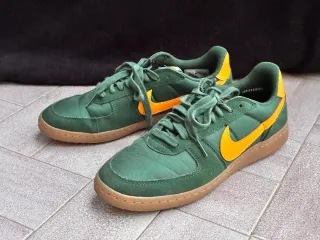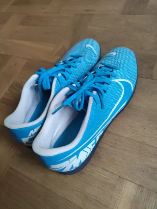Zapatillas de fútbol sala Nike en perfecto estado. Ideales para jugar en pistas interiores. - Diseño deportivo y llamativo. - Cierre con cordones para un ajuste seguro. - Suela de goma para un buen agarre.