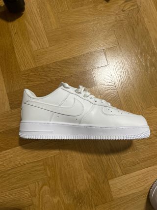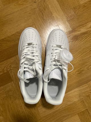 Zapatillas blancas Nike Air Force 1 NUEVAS con caja original. Hechas 100% de PIEL. Bambas de color negro que combina con todo. Cómodas, duraderas y de marca. Unisex, sirven tanto para hombre como para mujer. ORIGINALES. Compradas en la tienda oficial de Nike Barcelona. Perfecta para quedar con los amigos, ir de fiesta, día a día, trabajo, fotos y videos Instagram, tik tok... Talla 40 41 Precio en tienda: 150€ Ideal para regalar o estrenar. Hazte un buen autoregalo para esta Navidad Se puede quedar y probar sin compromiso