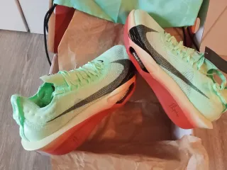 Zapatillas de running Nike Zoom Alphafly Next 3. Sin estrenar - Color principal verde menta. - Detalles en color rojo en la suela. - Diseño moderno y aerodinámico.