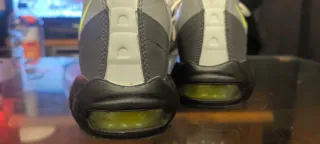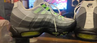 Zapatillas deportivas Nike Air Max 95 en excelente estado, usadas solo tres veces. - Diseño con capas superpuestas en tonos grises. - Detalles en verde neón. - Malla transpirable en la parte superior. - Unidad Air visible en la suela.