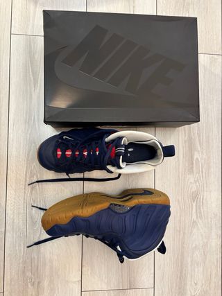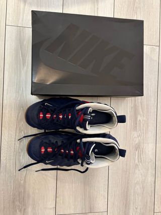 Zapatillas Nike Air Foamposite Pro en tonos azul y rojo, año 2020 - Diseño icónico Foamposite. - Detalles en University Red. - Suela de goma. - Cierre de cordones.