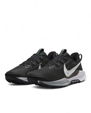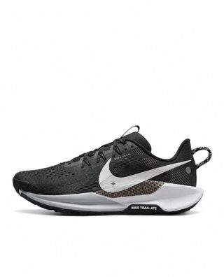 Zapatillas deportivas Nike React Pegasus Trail 5 en color negro, blanco y antracita. Diseñadas para el trail running. - Parte superior de malla transpirable. - Amortiguación React para mayor comodidad. - Suela con agarre para terrenos irregulares. - Detalle de Swoosh en blanco.