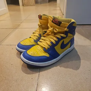 Zapatillas altas de estilo deportivo. - Combinación de colores azul y amarillo. - Detalle de logo Swoosh en el lateral. - Cierre con cordones. - Etiqueta Nike Air en la lengüeta.