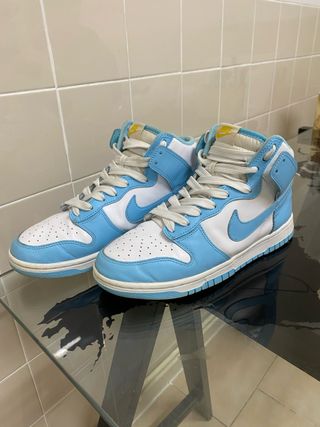 Zapatillas altas Nike Dunk High en color azul y blanco. Con un ciclo de lavadora en modo “Lavado delicado” con cordones y todo, se quedan como nuevas - Diseño clásico de baloncesto. - Cordones blancos. - Detalle de perforaciones en la puntera.