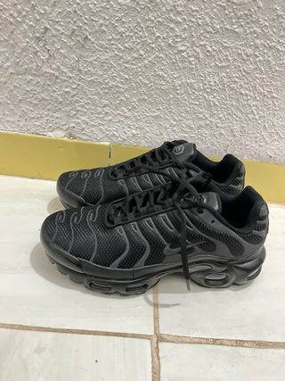 Zapatillas Nike Tn reflectantes de color negro. Un clásico para el día a día Las ha usado mi hijo 2 días pero veía que le iban pequeñas - Diseño moderno y deportivo. - Detalles en gris sobre la base negra. - Suela con amortiguación visible.