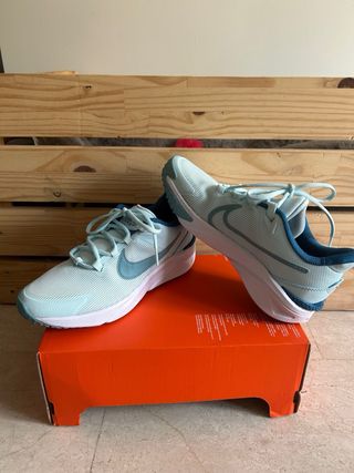 Zapatillas deportivas Nike Star Runner 4 en talla 38.5, sin estrenar. Ideales para running - Diseño moderno en tonos azules y teal. - Cierre con cordones para un ajuste seguro. - Suela blanca y robusta.