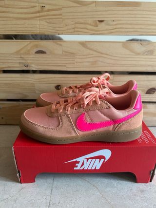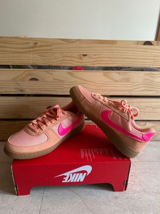 Zapatillas deportivas Nike Field General GS, talla 37.5, a estrenar con caja - Diseño en tonos rosados y detalles en fucsia. - Suela de goma marrón. - Cierre con cordones.