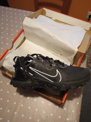 Zapatillas deportivas Nike en color negro, talla 42. Han sido usadas pero se conservan en buen estado. - Diseño deportivo. - Cierre con cordones. - Suela con amortiguación visible.