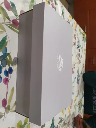 Caja Vacia para zapatillas Nike Air Force 1. - Color gris y blanco. - Incluye etiqueta con información de talla.