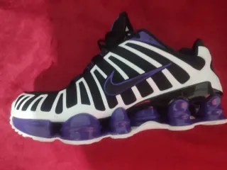 Zapatillas Nike Shox R4 en color negro y púrpura. Diseño moderno y llamativo. - Combinación de colores negro y púrpura. - Suela con tecnología Shox para mayor amortiguación.